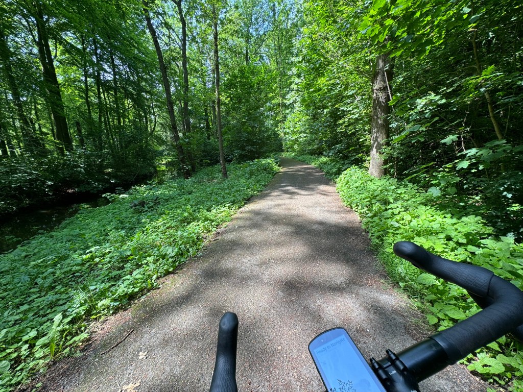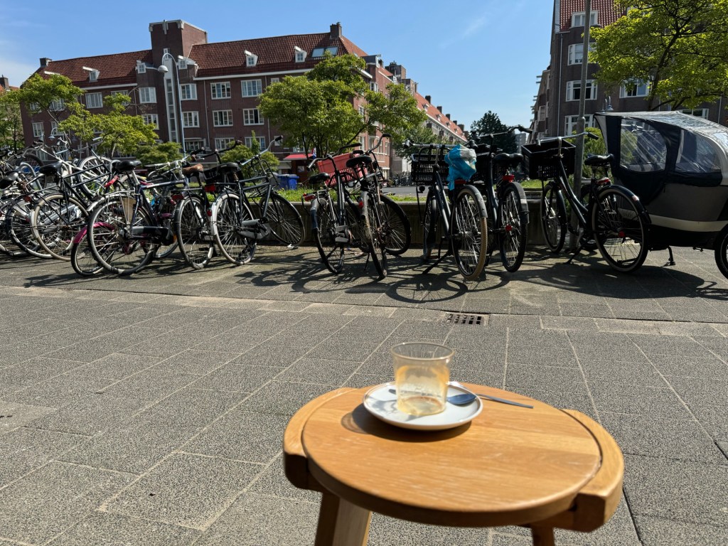 A pedestrian bridge cover one of the ubiquitous canals. Sidewalk, then bike path, then road. Kicking of my bike adventure. Typical bike parking. This sight is everywhere. On my long ride, I was never sharing a surface with cars for more than about 40 feet at a time. Signs along the bike network guide you to your destination. 60 was the number for the quaint village of Ouderkerk aan de Amstel (pics below), about 9 or 10 miles outside the city.I took a different route back to the city, following the river and waypoints 50, 57, and then 56, then I was back!Above is a major highway which would have separated me from the village. The underpass is nice, but there’s also a bike interchange above, allowing you to cross the river without ever going near the actual road. Riding through Amsterdamse Bos (Amsterdam Forest), a giant wooded park on the south side of the city. I won. I’d never ridden a gravel bike, the only reason I chose it was because the shop had full carbon gravel bikes but only aluminum for road bikes, and I’m a snob. But I’m so glad I did—I now get why people love them. The homes along the Amstel River are absolutely beautiful. I assume they are mostly weekend houses for wealthy people?Windmills of course. Worth a detour for a better pic. My elevation was negative for most of this ~three-hour ride, meaning I was riding on polders—reclaimed land that would naturally be submerged.. The windmills and canals are part of the system of dikes, levees, and pumps that keep Amsterdam above water. In Ouderkerk village. This appeared to be some sort of working historical farmhouse / museum.Apple pie at Bakker Out, a bakery open since 1897, is the traditional refuel for cyclists on this route. You can’t break with tradition.