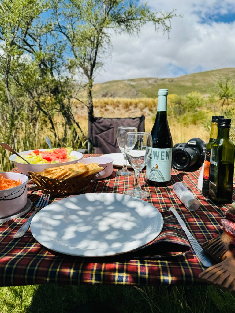 Our guide Eduardo was a joy to be with. He explained the differing climates—the mountain forest of our hotel versus the steppe that surrounds the river. He also explained the differing attitudes of his fishing clientele—“Enjoyers” versus those who bring their “psycho bullshit” to the river, never looking up from the bobbing fly, missing all the scenery, and cursing every bad cast. He told us how proud he is of his two sons, (“13 years apart, same mom!”) who both love the outdoors as much as he does. One is doing a PhD in Andean ecology, combining his two loves: climbing and biology. In the afternoon, Eduardo prepared an elegant meal on a gas hot plate on the riverbank while we continued fishing. After a few days of vegan food, his chicken with grilled onions hit the spot. At the end of the day, he gave us each a big bear hug, and thanked us for being Enjoyers.