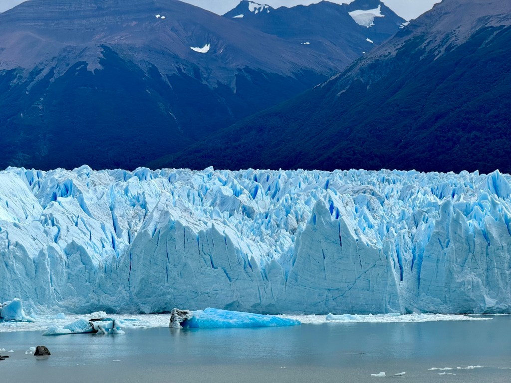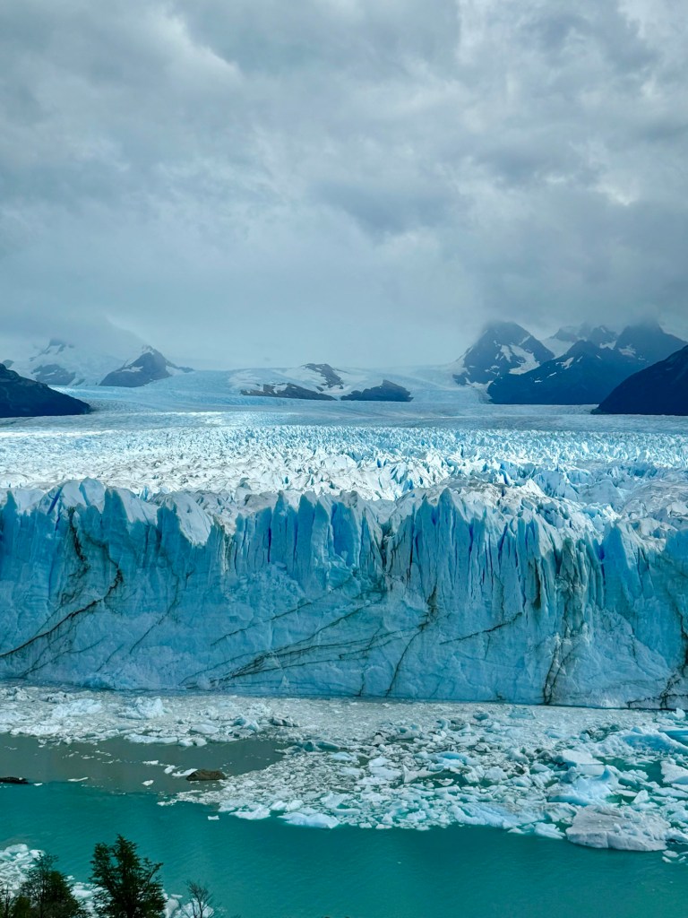 Bariloche in the Lake District of Patagonia.The common area of our hotel.On the way up to the base of Fitz Roy.East face of Cerro Torre, taken the next day on our shorter hike.Now down to the Calafate area, visiting the Perito Moreno Glacier.Even when you’re next to it, it’s impossible to comprehend the size. There is just no sense of scale. These peaks are about five stories above the water. The electric blue piece in the water, which is closer to us than it looks, is at least the size of two school buses. Because of the color, you can tell this piece is super-dense ice, meaning it broke from the bottom and floated up.~Five miles of glacier, slowly advancing over the mountain, fed by the Southern Patagonia Ice Field. The field is 6,000 square miles, larger than Connecticut.Zooming out.All three faces, seen from the catwalks across the water. The part we walked on in the first picture is just barely visible at the far left. It’s the tiny peak you can see at the edge of the frame.Back on the glacier side. Every four years or so, the ice reaches the opposite shore, and creates an ice bridge and a dam. This sign marks the highest level of the lake during the last the bridge in 2018. Apparently, glacier fanatics from all over the world booked stays for that whole summer, and bought tickets into the national park every single day, wanting to see the rupture. Then it broke overnight and no one saw it 😦 .