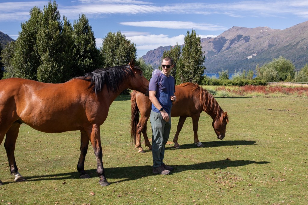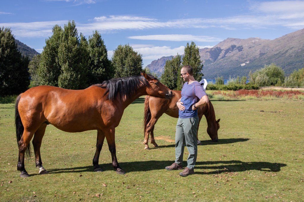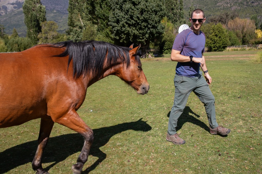 In Bariloche Kelly captured these majestic horse photos.Look at him go.It’s like a painting!We were told we could feed them apples.How it started.Then, this guy on the right showed up.… and he was aggressive.The other horses all left. They know his deal. I was out of apples.He did NOT believe me.Checking my back pockets …… and checking under my hat.Chasing me.Actually chasing me! He was like an eager puppy but 100x bigger.Horses are not just Men Extenders. They have minds of their own.